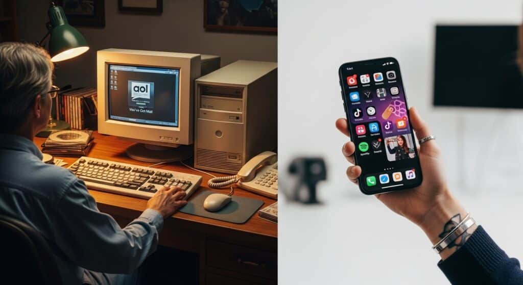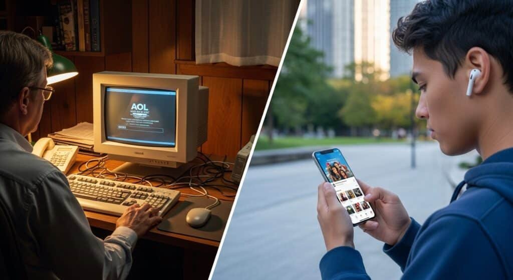 Here’s the truth: boomer parents still use AOL email in 2025. Yes, AOL email still exists. Yes, legacy email providers from the dial-up generation somehow keep chugging along. And yes, your parents won’t change email even if you offer them a brand-new iPad and a password manager subscription. Underneath the absurdity of boomer technology habits lies a serious story about how a company that once carpet-bombed American mailboxes with CDs became an outdated email service, and how boomer online behavior exposes a deeper generational technology gap and real digital divide between generations.