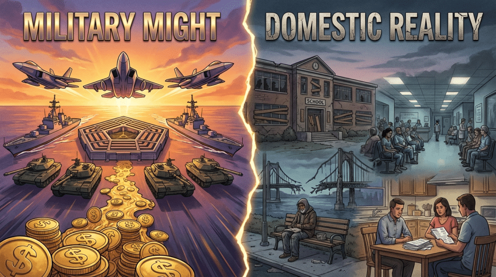Expect a decade where military capacity is treated as identity and domestic capacity is treated as optional. “We can’t afford it” will apply to civilian life, not defense growth. The pattern is set: baseline defense spending increases, supplemental defense appropriations when needed, and annual battles over everything else.