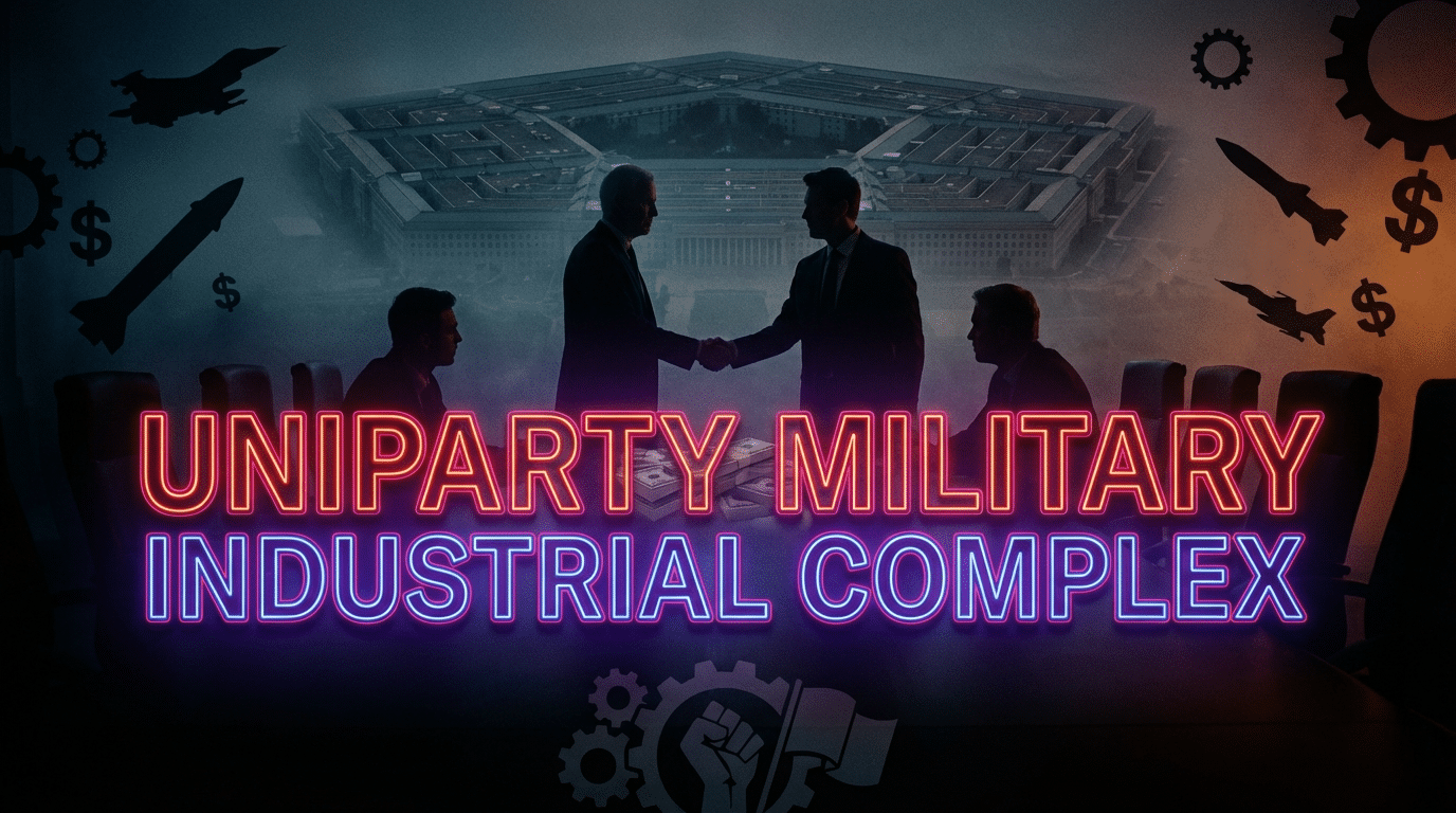 The term “uniparty” describes how the Republican and Democratic establishments function as a single entity on key issues—especially war. Despite soundbite differences, both parties consistently support ballooning defense budgets and endless military interventions. The uniparty military industrial complex is the fusion of this political unity with the defense industry’s profit motive.